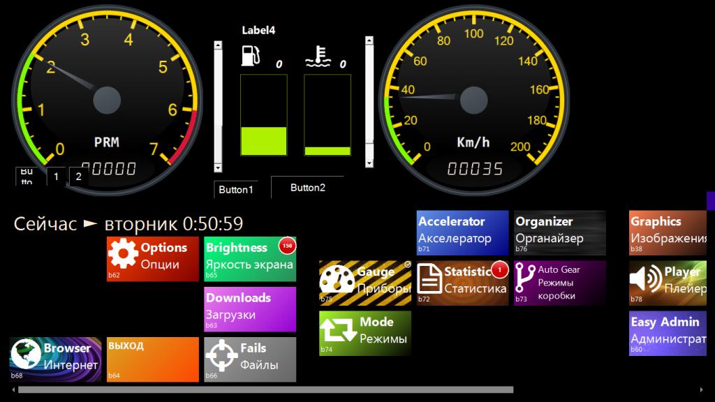 Господа сейчас много работаю заниматься программой некогда . Этот фронтэнд создавал с "чистого листа" на Microsoft Visual Basic 2008 и Microsoft Visual C# 2008 , это не скин и не пародия на подобные программы это самостоятельная попытка создать свой фронтэнд. Исходник вскоре появится , создание программы началось в 2013 году под проект, поэтому образовалось множество версий с различными недоделками так как в основном она должна была управлять системами автомобиля ,а про мультимедийные функции думал в последнюю очередь. Таймеры тоже присутствуют. 3 таймера "НАПОМИНАНИЯ ЕДИНОВРЕМЕННОГО ХАРАКТЕРА" , 2 таймера "ЗАПУСК ПРИЛОЖЕНИЙ ПО РАСПИСАНИЮ" и 3 таймера "НАПОМИНАНИЯ ЕЖЕДНЕВНОГО ХАРАКТЕРА "