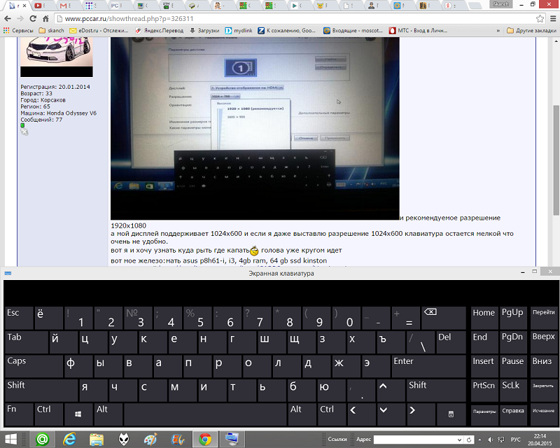 проблема состоит в том что после установки любой сборки вин8.1 имеем маленькую сенсорную клавиатуру и рекомендуемое разрешение 1920х1080