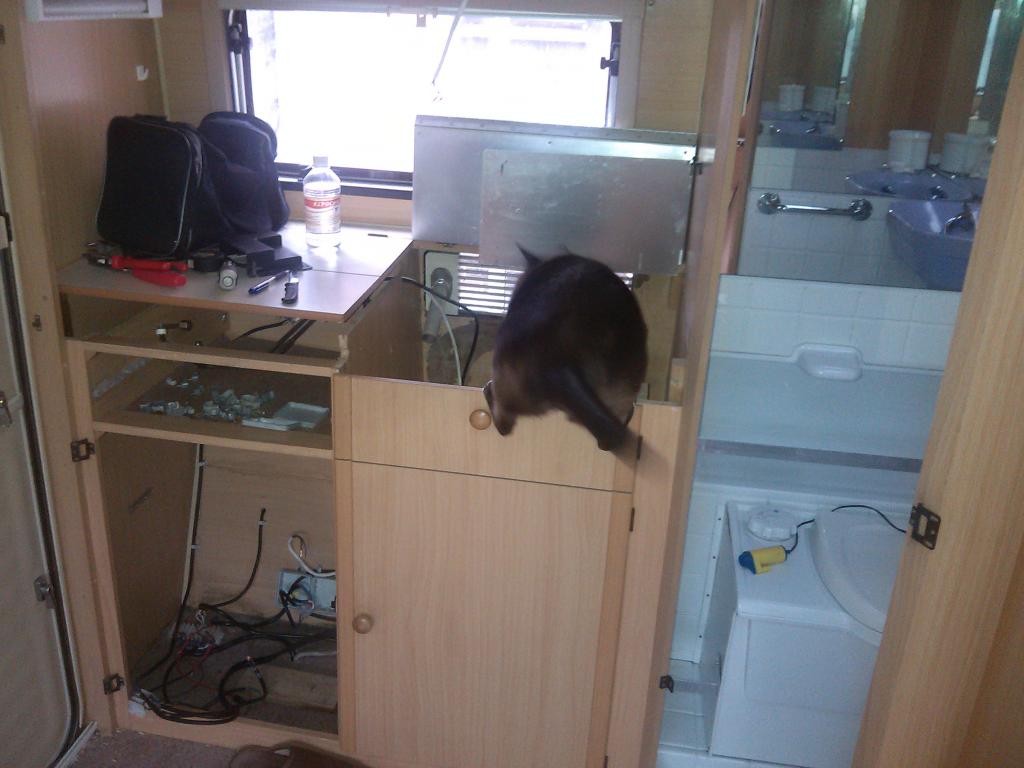 Но это все на будущий год... Новый диван с "электро"-тумбой собрал уже внутри - разработанная схема работает. Поменял свет на светодиодный. Все оборудование теперь только на 12в. Один БП сдох : проработал всего 2 часа от 220в. Он как-то сразу не вызывал доверия, зато ожидания оправдал... ))) Поставил новый марки Mean Will на 150вт: хватит на свет и три помпы, которые, к тому же, вряд ли будут все вместе работать. Попутно обслужил тормоза и установил амортизаторы подвески: полдня лежал под днищем. Заодно обследовал его и сделал замеры под водяной бак. Осталось 4Х2 выходных до первого выезда - поэтому работаю очень напряжно, чтобы успеть. Осталось еще много, но и сделано немало. Водопровод придется оставить по прежней схеме - заменю только шланги. На стационарный бак и напорную помпу уже не т времени и денег. |