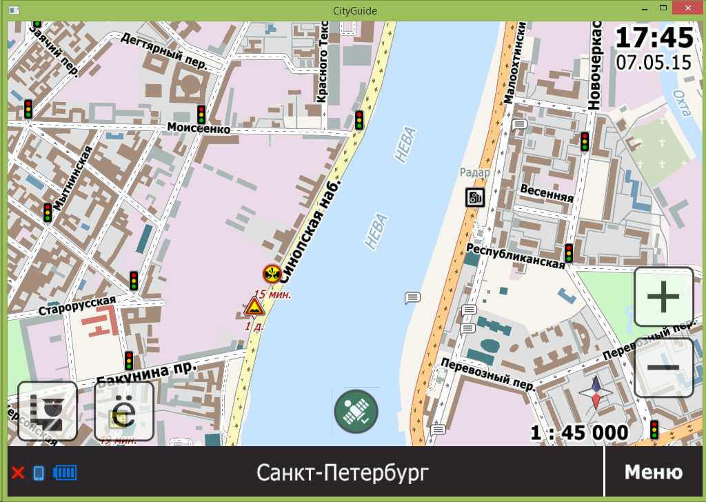 Все показывает. Конкретно: Не было арсенальной и малоохтинской набережной, Съезда с кольцевой на шафировский пр. Индустриального проспекта |