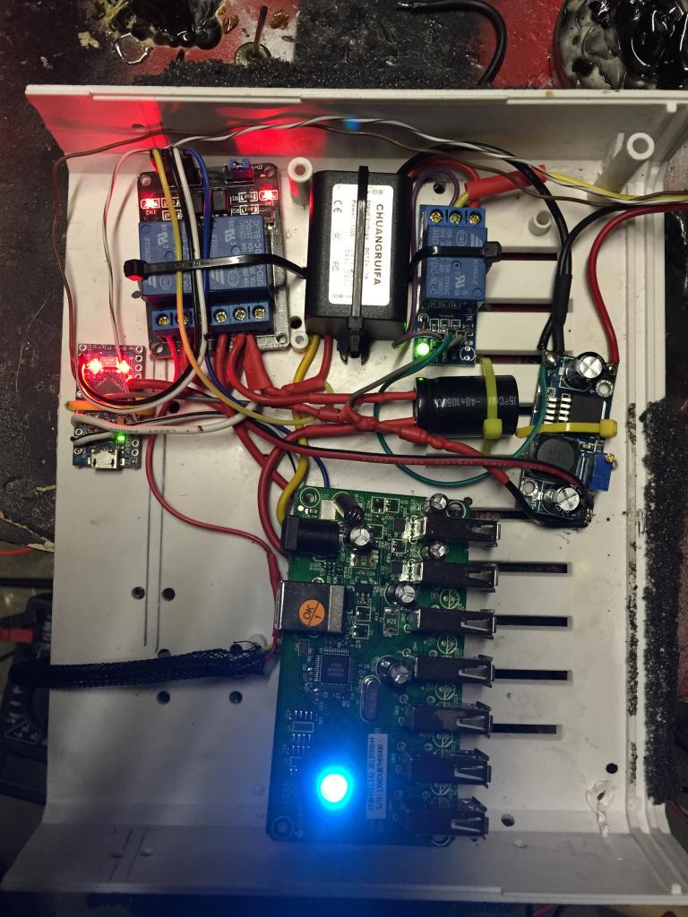 Вроде ничего так, если аккуратно, то на плате собирать все. Или если покрасивше, то найти более нормальную площадку. И лучше все таки КИСы, чем такие БП, не греется кстати? Много уж на него посажено. Можно поставить 3 киса и один главный рубильник.