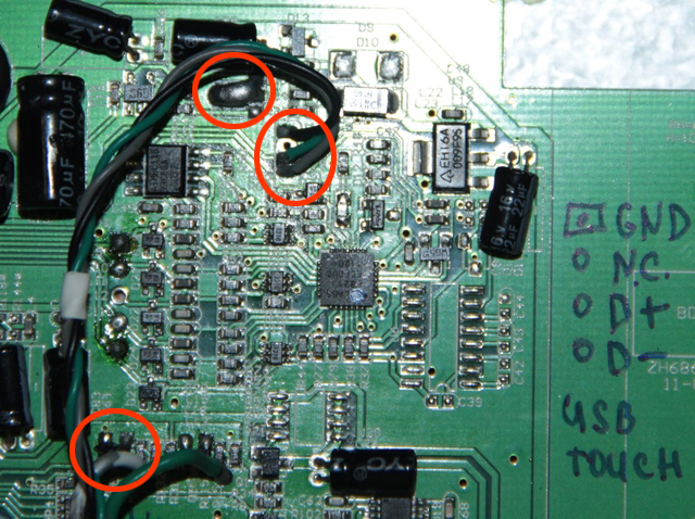 - припаиваю USB кабель небольшой длинны к штатным отверстиям на плате контроллера монитора напрямую и использую обычный удлиннитель ЮСБ.