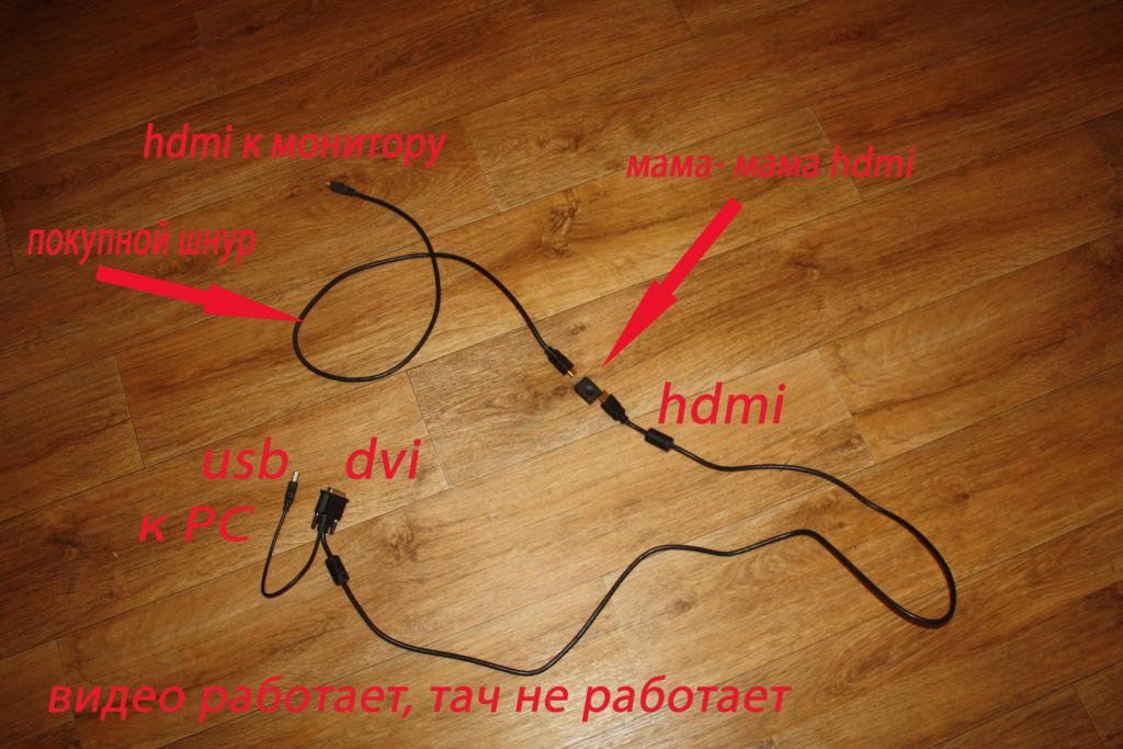 - припаиваю USB кабель небольшой длинны к штатным отверстиям на плате контроллера монитора напрямую и использую обычный удлиннитель ЮСБ.