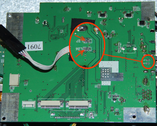 - в контроллере монитора (лилипут) я отпаиваю на плате 2 индуктивности, чтобы 2 сигнала (USB DATA+ и USB DATA -) не шли в кабель.