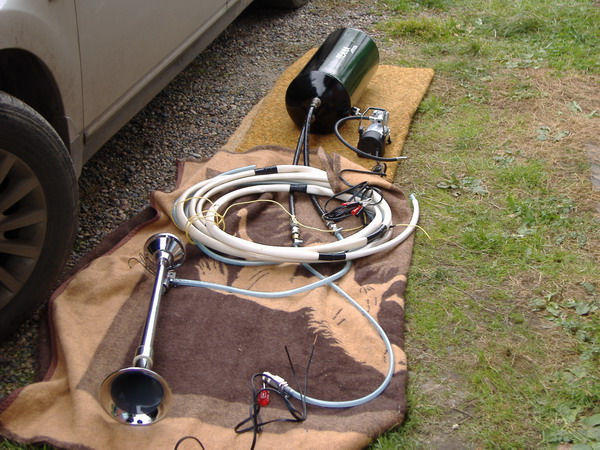 Вот система в тесте до установки в машину. Там еще нет 2-х трейлерных дудок.
