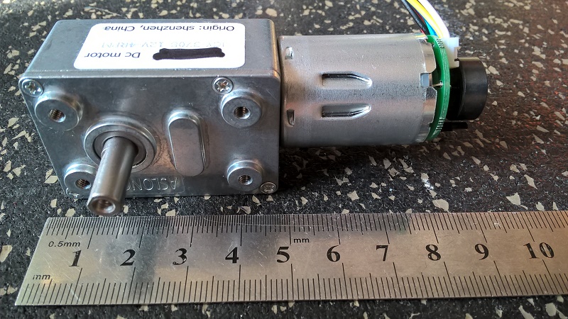 Купил неплохой, на мой взгляд, мотор с червячным редуктором и с энкодером. Енкодер построен на датчике Холла .