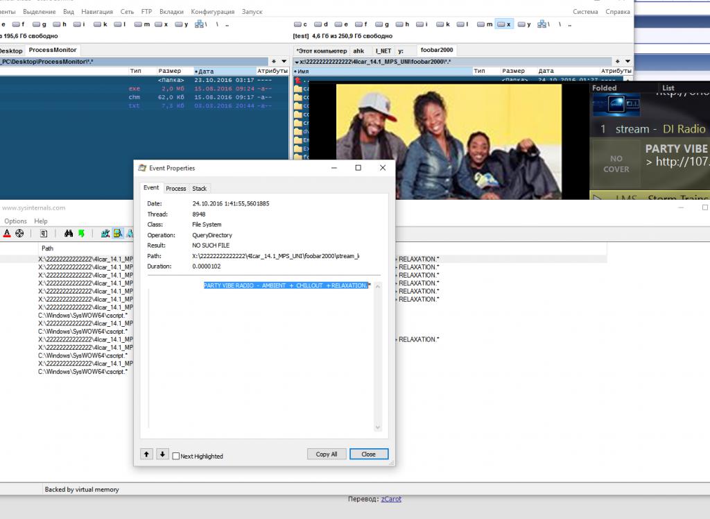 Foobar накрылся.... duzzy, у меня какая-то фигня, поставил новый плеер - работает. Добавляю плейлист Онлайн - радио Россия.fpl - работает. Выключаю. Запускаю - запускается через несколько минут. Висит на плейлисте (программа не отвечает). Затем попускает..... Не знаю, duzzy, плеер не отвечает. Закрываю. Запускаю (безопасный режим). Все плейлисты переключаются. Только выбираю Онлайн - радио Россия - все, программа не отвечает Проверил на других сборках - не моих. Виснет. Последний раз редактировалось kgena_ua; 23.10.2016 в 14:36. |