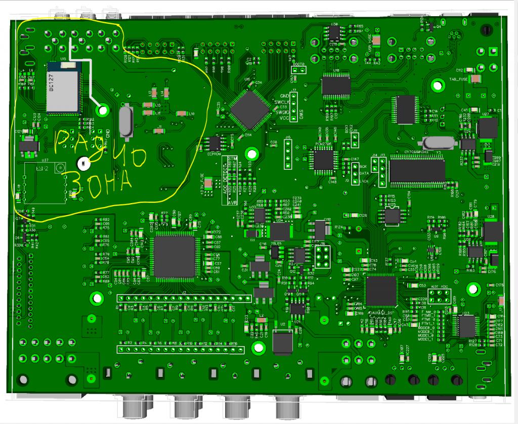 С другом долго думали и решили отказаться от разъема расширения, его практический полностью смогут заменить беспроводные модули на ESP8266. В место матрицы установил FMрадио на TDA7786 + она поддерживает HD Radio ™. ![]() Чтоб максимально защититься от помех, радио разместил на обратной стороне платы. Дополнительно защитит сплошной полигон земли. |