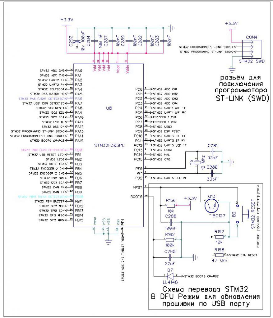 Нарисовал схему обвязки STM32, управления портами USB3-4, датчиком холла и режимом OTG.