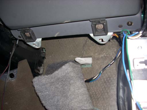 Для начала снял сидение, проводка у меня за спинкой проходит. По левому борту уже проходил жгут кабелей на фары, багажный свет, замки и колонки - вобщем, вся заводская проводка задней части. Во время монтажа оказалось, что там же идет проводка на датчики топлива (бак под задним сиденьем) и датчик ремня. Эти отводы сильно усложнили работу. Правый борт практически пуст, там только концевики дверей и провода на привод замка боковой двери. По левому уже забитому борту пошли 2 кабеля питания: 1 - 2х2.5, одна жила из которого пошла на комп, вторая на розетку-прикуриватель. Розетка позже будет стоять в пластиковой обшивке сбоку под антенной. 2 - 4х0.8 жесткий в экране. Пара жил пойдет на питание монитора, от БП компа. По другой жиле в обратном направлении побежит сигнал с ключа. Жесткие провода кидать вобще не рекомендуется, но у меня не было более подходящего по сечению провода. В правый борт ушли сигнальные кабеля: 1 - VGA 5 метров. 2 - USB 5 метров. 3 - 6х0.22 "охранный" для подключения кнопки питания и индикаторов. 4,5 - 2х1,5 новые провода на задние колонки. Позже, после добавления усилка, по ним пойдут передние динамики. Все провода доведены до центральной консоли по длине, но спрятаны в нише за бардачком. Ниша закрывается заглушкой на пистонах. Мне показалось это удобным местом для соединений и переходников. В багажнике провода пока брошены болтаться, позже спрячу под обшивку. В моторном отсеке провод питания подключен к панельке на пару предохранителей, а от неё к аккуму. Панелька закреплена возле аккума и имеет прозрачный колпачек для защиты. |