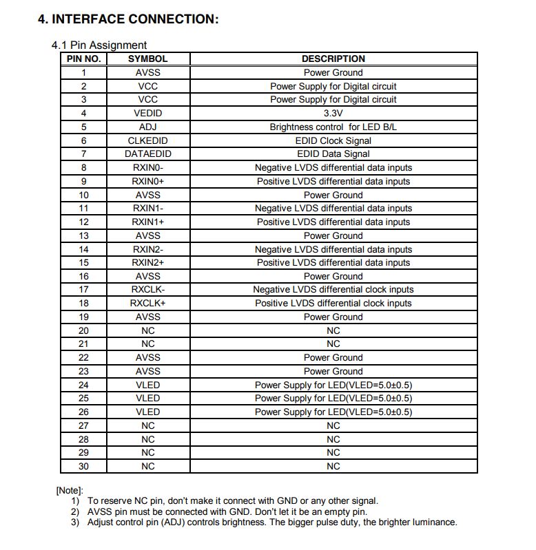 Колян, а вообще - рисковый ты малый. Не включив голову впендюрил 2-канальный 8-битный шлейф от фулхд моников в 1-канальную 6-битную матрицу, у которой распиновка даже близко не совпадает. Кто ж так делает? Пустишь 3,3В на какие нить входы трансмиттера и прощай матрица. Хорошо в том шлейфе питальники попали на пустые пины матрицы... И это, раз ты так бесшабашно подходишь к этому, есть еще один момент: у 8,9" Чунгвы питание встроенного драйвера LED не более +5В и если ты еще ее вопрешь напрямую в разъем народного контроллера - еще и подсветка помашет ручкой. Скажи спасибо что в том шлейфе не выведен разъем на инвертор, а то бы уже спалил...