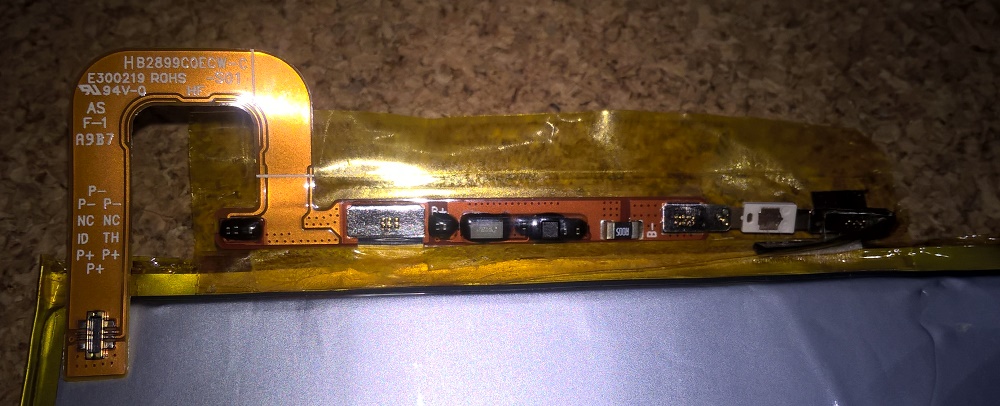 Это с "отстёгнутым" экраном. ------------------------------------------------------------ Батарея несъёмная-приклеена на тонкий двухсторонний скотч. "Срезал" её пластиковой лопаткой. ------------------------------------------------------------ Разъём micro USB. ------------------------------------------------------------ Для подключения внешнего питания я использовал свою схему, описанную в этой теме. Линия "плюс" подключается прямо на разъём на мат-плате, с использованием для этого контроллера батареи. ------------------------------------------------------------ "Минус" паяется на общую "массу" на мат-плате. Напряжение питания 4,4V. ------------------------------------------------------------ Управление планшетом будет по "нажатию" на кнопку питания. На материнке есть три "пятака"- выводы от кнопок управления. Управление однопроводное с замыканием на "массу". ------------------------------------------------------------ Вывод от кнопки питания. ------------------------------------------------------------ Ниже результат теста в AnTuTu BenchMark. ------------------------------------------------------------ Планшет оказался очень "экономным"- при максимальной нагрузке в процессе теста пиковое потребление было зафиксировано на уровне 1,6А. При переходе в режим "сон", примерно через полторы минуты, в течение которых, по всей видимости программно завершаются все процессы и отключаются все приложения, потребление планшетом равно 1,5мА. При этом WiFi, bluetooth, GPS подключены постоянно. Пробовал оставить включённым Яндекс-навигатор - то же самое... Это вид со стороны крышки планшета. Установлен блок питания, HUB и угловой USB разъём. Последний раз редактировалось skanch; 19.02.2020 в 03:51. |