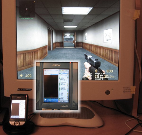 Есть такая прога Innobec_SideWindow_1.01. Посмотри здесь. Расширяет рабочий стол на экран КПК. И с КПК можно компом управлять по блютус.