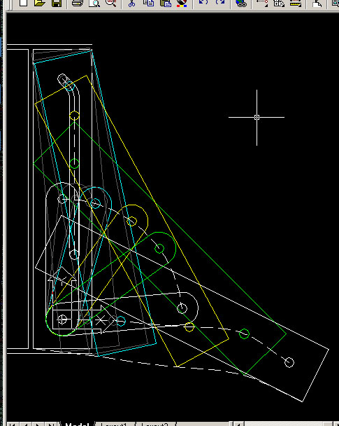 схема - супер, я тут опробовал несколько вариантов с пластиком и конструктором юность… в результате чего выяснил, что самой оптимальной схемой будет вариант с горизонтальной тягой, примерно как на рисунке, только вертикальная направляющая должна быть S образной… мне удалось монитор вывести почти в горизонтальное положение, и без увеличения усилия вернуть его обратно… но тут же возникла другая проблема - шлейф, его ведь надо как то освобождать и собирать обратно… может прокатиться на рынок и там подглядеть у именитых производителей…