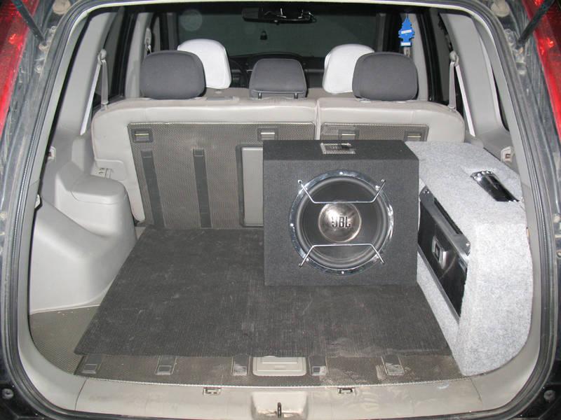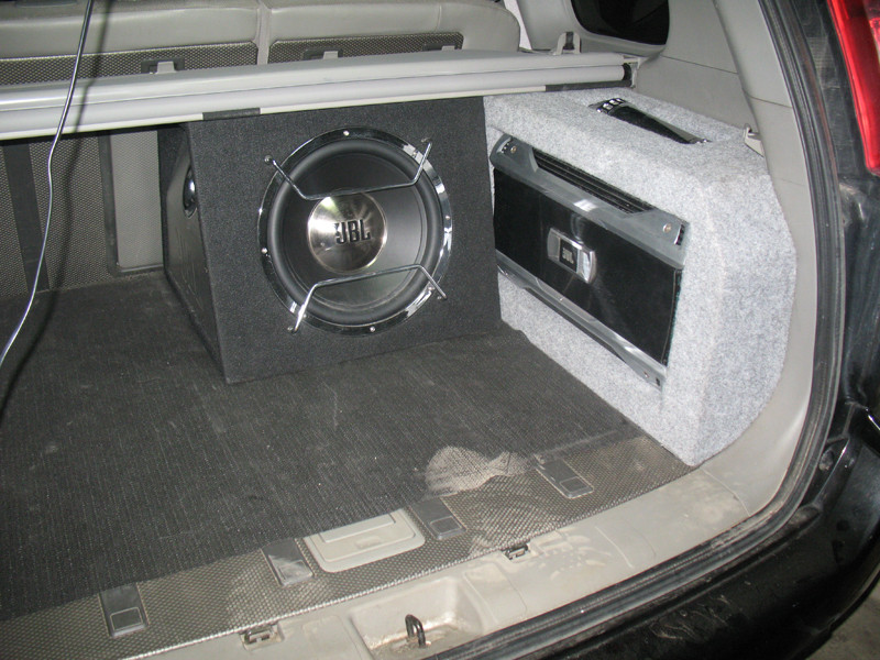 Итак по порядку. Сам пациент располагает большими возможностями для установки карписи - салон большой, куча бардачков и потайных мест. По началу хотел делать карписи из тех железок, что были в наличии: asus p4p800, pen 3000, hdd 80gb и т.д. и разместить все это чудо в заранее изготовленном корпусе. Далее мысль о корпусе отпала сама собой, ну не хотел я отнимать место у багажника  и было решено установить мать на жесткой подложке в нишу багажника с правой стороны. Сказано-сделано. Отпилил от корпуса подложку под мать и разместил как задумал.