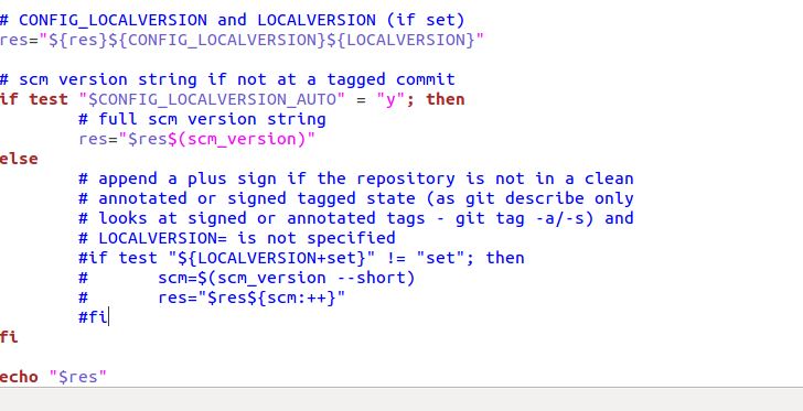 Чтобы убрать добавляющийся плюс в номере версии ядра, нужно: