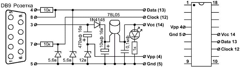 Сегодня пол дня пытался прошить PICу. Так ничего и не вышло. Единственная программа где микроконтроллер определялся автоматом это "PICPgm Programmer", но при прошивки программа вылетала. "ICProg" прошивала и читала, но при проверке выдавала ошибку "0000h". "WinPic800" при запуске программы выдавала ошибку. Собирал по данной схеме. Схему проверил несколько раз. Я так понимаю что на контакте 1(VCC) должно быть 5 вольт, а вместо этого -0,42. При всем при этом диод состояния мигал при прошивке.