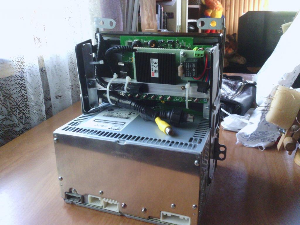 Вчера куплен монитор 7" с тачем и автопереключением на КЗВ. Протестировал - вроде неплохой. Одно раздражает - при включении и выключении, когда отсутствует сигнал, то экран на какое-то время становится с синим фоном. Вроде народ меняет прошивку и избавляется от этого, но дело это геморрное - связанное с выпаиванием планарного чипа, отправкой его черт-те-куда, и обратным впаиванием. На фотке этот экран с запущенной оболочкой iCarDS версии 1.7. На другой фотке сам системник - размер 172Х172Х60. Пока он в таком каркасном варианте - до окончательно выбора места установки.