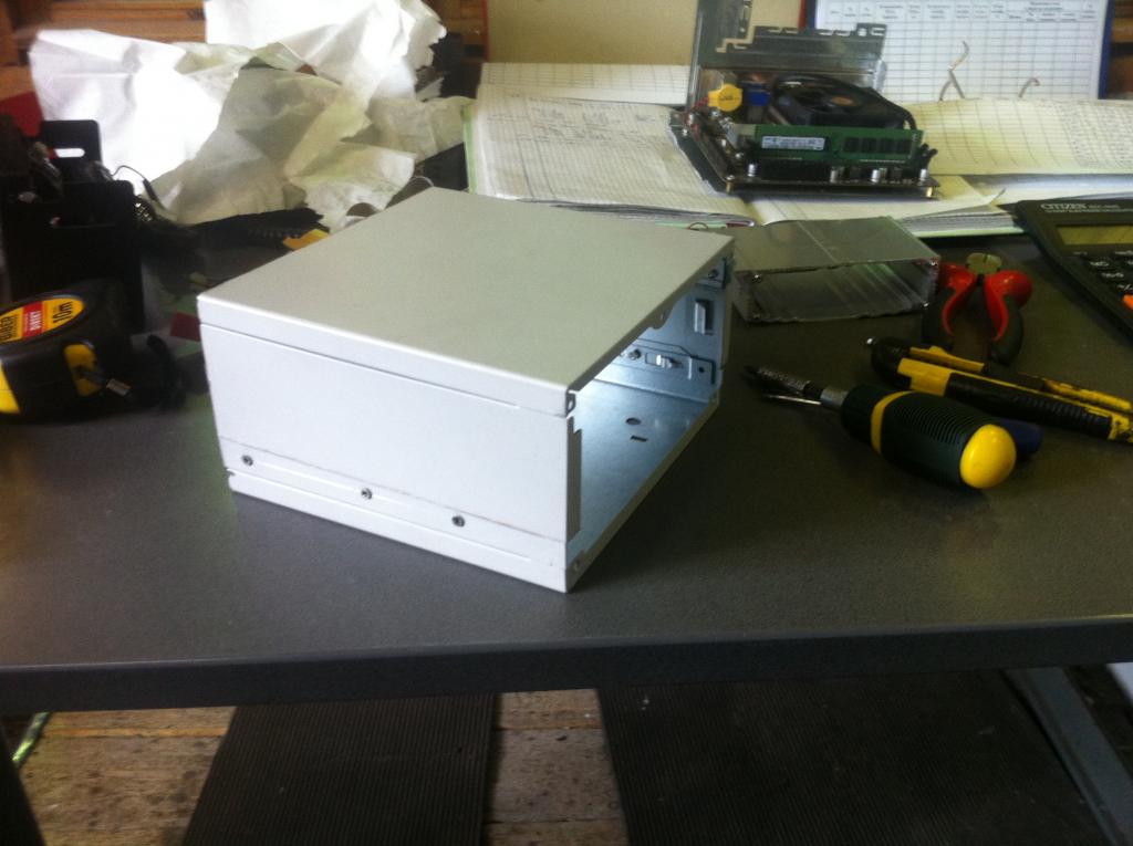 Для донора взял старый системник (не знаю че стоял в шкафу), разобрал и попилил. В основном оставил верхнюю крышку и кусочки боковин. И вырезал панель к которой крепиться мамка чтобы не гадать с размерами ее креплений.