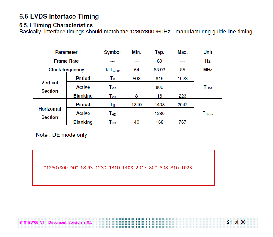 ПРИМЕР. Открываем даташит на B101EW05. Листаем до пункта 6.5.1 Timing Characteristics. Смотрим в него и собираем моделайн для этой матрицы: Для того, чтобы собрать EDID нам нужен был моделайн - мы его получили. А дальше все в EDID эдиторе легко корячится - я же расписал что и как там делать...