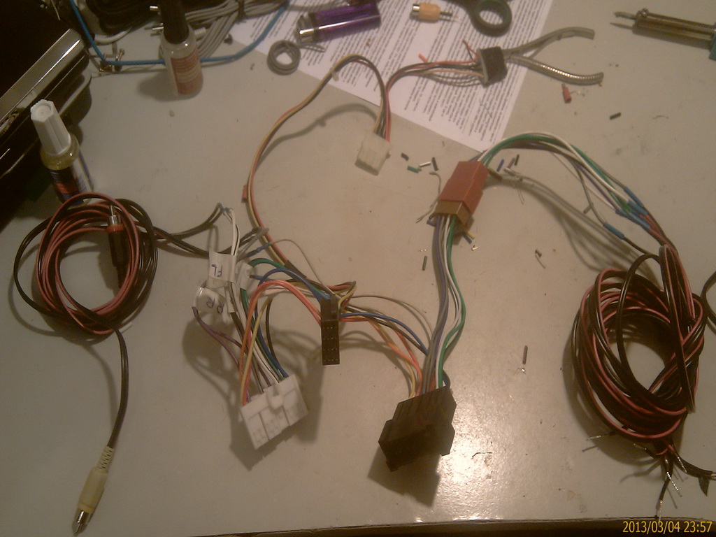 1. С магнитолы на усилок уходят лишь два канала с передних колонок. Т.е. выходы на колонки с магнитолы задействовал только 4 контакта. 4 контакта и провода свободные. Их перекину потом.