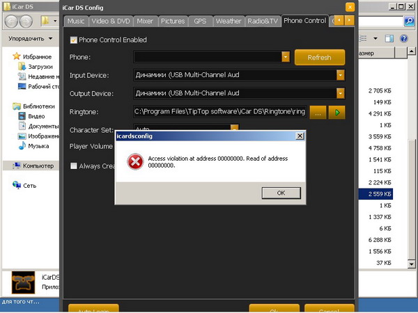 запускаеш icarDSConfig появляется ошибка нажимаеш ОК запускается iCarDSConfig в вкладке настройки телефона активировал Phone Control нажал Refresh и получил опять ошибку.. Получается конфликт (у меня стоит BlueSoleil 5 но телефон настроен для ICarDS еще не был) снес BlueSoleil и все заработало.. А произошло это после установка IcarDS 1.7 на версия 1.6 прикрепляю лог IcarDSConfig может понадобиться,,, Последний раз редактировалось hawk; 07.10.2012 в 14:35. |
