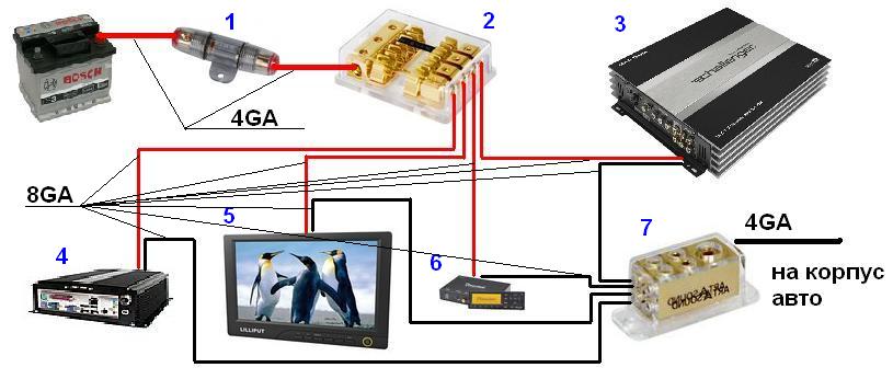 7) дистрибьютор питания для суммирования массы и сведения оной к единой точке на корпусе авто— пока не приобретен (планируется что то типа Art Sound APD 41)