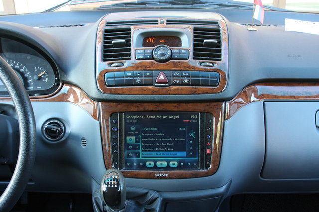 Первый, и самый трудный, на мой взгляд, этап - инсталляция монитора, и в том числе изготовление новой рамки. Первоначально консоль, где располагалось радио и предполагалось вместо него установить монитор, выглядела вот так. Для творчества, за основу была взята штатная рамка. Для ее переделки, чтобы авто не выглядело раздетым, так как предполагал, что этот этап сильно затянется, купил новую штатную рамку и начал ее подстраивать под монитор PCM-800, который предварительно приобрел. Сначала определил рабочие границы видимой части экрана и внешние установочные размеры матрицы, для чего, соответственно, пришлось разобрать монитор на фрагменты. По полученным размерам вырезал из стеклотекстолита плоскую рамку с внешними размерами по габаритам матрицы и с внутренними размерами соответственно по видимой границе. Изготовленную рамку вклеил в штатную на ПОКСИПОЛ, для чего по ходу дела пришлось немного попилить штатную рамку, в основном внутренние ребра жесткости, которые мешали изготовленной рамке лечь в одной плоскости. Главная задача состояла в правильной центровке этой рамки относительно штатной, так как в противном случае могли возникнуть проблемы с установкой монитора, поскольку внешние габариты матрицы оказались тютелька в тютельку по размерам гнезда консоли в машине (а пилить консоль я был-бы не готов). Далее следовал малоприятный и малоинтересный этап многократной шпаклевки, зашкурки и покраски рамки из баллончика. Ровной матовой поверхности не получилось, как ни старался. Пришлось остановиться на шагреневой структуре поверхности, которая получилась непроизвольно (из серии – захочешь так сделать, еще раз не получится). Блок кнопок монитора пришлось порезать на части и скомпоновать по новому, слева и справа от монитора, так как штатное их расположение было внизу, а возможности поставить их так-же не было из-за недостаточности вертикального пространства в консоли. Туда-же поставил и кнопку включения компьютера и индикацию состояния. После этого все было уже просто. Рискнул приклеить матрицу к рамке на двухсторонний скотч для надежности при тряске. Дополнительно поджал скобками. Все прошло успешно! Тач работает нормально. Плату прикрутил через резьбовые втулки, приклеенные ПОКСИПОЛОМ к основной штатной рамке и закрыл весь этот пирог панелью из стеклотекстолита на всякий случай для защиты платы от возможного контакта с металлическими деталями. Получился вот такой сэндвич. На него и фильтр по питанию приклеил в коробочке. Осталось навести последние штрихи в смысле декорации и вот готовый продукт для вживления в машину. И вот он в машине. Продолжение следует.