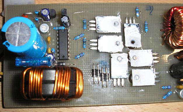 от какой напруги (в В) питаешь сей девайс? Транс точно ни причем если не греются полевики и выходные В в норме кольца надо было супер клеем склеить под давлением так было бы лучше если греется 494 либо что то с выходом 9,10 либо с частотой (ну мне так кажется) хотя можно попробовать ее заменить предварительно я б конечно все ще раз проверил и "процарапал" чем нибудь хоть иголкой дорожки