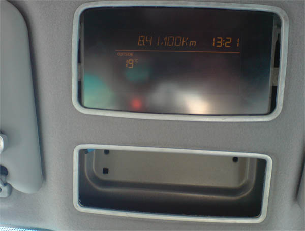 Из преимуществ такого расположения: 1. Короткий кабель до камеры. 2. Удобство управления девайсом - Индикация и кнопки будут навиду. Пока размещаю предварительное фото места "строительства". В выходные попробую сделать крепление. Потом рамку. Рамка для дисплея климата уже готова. Заказывал лазерную резку. В принципе материал легко обрабатывается, но побоялся, что сам не смогу ровно вырезать. К тому же один из элементов рамки был задуман из материала толщиной 1,5 мм и шириной стенки рамки 2 мм. Навряд ли смог бы сам вырезать. Т.е. изготовление 3-х рамок (из которых потом склеилась одна) обошлось в 300р. Считаю, что приемлемо. Осталось ее покрасить и закрепить. Сейчас обдумываю как и чем ее крепить к обивке потолка. Последний раз редактировалось Alex-NN; 14.11.2010 в 00:14. |