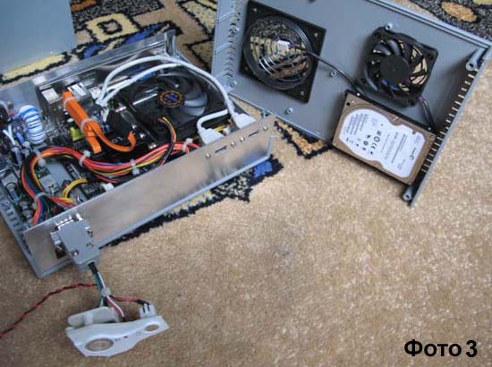 В качестве корпуса была использована пластиковая монтажная коробка G729AV (260x180x65). Все неиспользуемые питающие провода были вырезаны, остальные оптимизированы по длине и заключены в термоусадочные трубки для лучшей циркуляции воздуха внутри корпуса. Кулер ЦП вдувает воздух, а меньший кулер выдувает (силино шумел, поэтому подключил его к 5В - вращается в два раза медленнее и бесшумно). Тем самым внутри блока образуется избыточное давление, что препятствует скапливанию там пыли. Фото 1: Общий вид системного блока вместе с дополнениями для подключения дома. Кнопка на 20-пиновом разъеме БП АТХ постоянно замыкает черный и зеленый провода для его постоянной работы (Рисунок 2). Кнопка у разъема питания на системном блоке замыкает желтый провод +12 вольт с проводом АСС на М2-ATX. Сделана на перспиктиву, так как интеллект M2-ATX пока не используется. Фото 2: Все в раскрытом виде. Фото 3: Передняя панель. Выведены 2 дополнительных USB-порта и "мама" com-разъема для управления РС. В качестве провода используется "витая пара". В него вставлен com-разъем "папа" и узел кнопок от старого системного блока (красно-черный провод, который никуда не подсоединен - это Reset). Решил, что Reset мне не нужен. Фото 4: Фильтр по питанию. Для устранения помех по питанию, на вход БП был смонтирован фильтр из конденсатора 10000mF/35В, ферритового кольца МП140-4 (36х25х9,7) и медного одножильного провода 1,5 мм. кв. Провод намотан на кольцо в два слоя, получилось около 45 витков. Схема подключения на Рисунке 1. В связи с тем, что пластиковый корпус препятствует нормальному теплообмену и не экранирует, было принято решение заменить его на металлический Morex Cubid 5677B (без БП). Как всегда пришлось дорабатывать напильником: Фото 5: Все в раскрытом виде. На задней панели было прорезано отверстие для разъема питания. Два вытяжных вентилятора были прикручены непосредственно к верхней крышке и подключены к "материнской" плате. Фото 6: Передняя панель. Выведены 2 дополнительных USB-порта и "мама" com-разъема для управления РС. В качестве провода используется "витая пара". • В com-порту задействованы 6 ножек: ножка 1 - Power sw + (синий) ножка 9 - Power sw - (бело-синий) ножка 2 - Power led + (зеленый) ножка 8 - Power led - (бело-зеленый) ножка 3 - Hdd led + (оранжевый) ножка 7 - Hdd led - (бело-оранжевый) В него вставлен com-разъем "папа" с вставленной кнопкой "Power". Рисунок 1: Схема подключения фильтра питания. Рисунок 2: Слева: схема переделки БП ATX для постоянной работы. Справа: схема фишки питания в БП АТХ. Последний раз редактировалось Serg_w; 07.12.2010 в 00:45. |