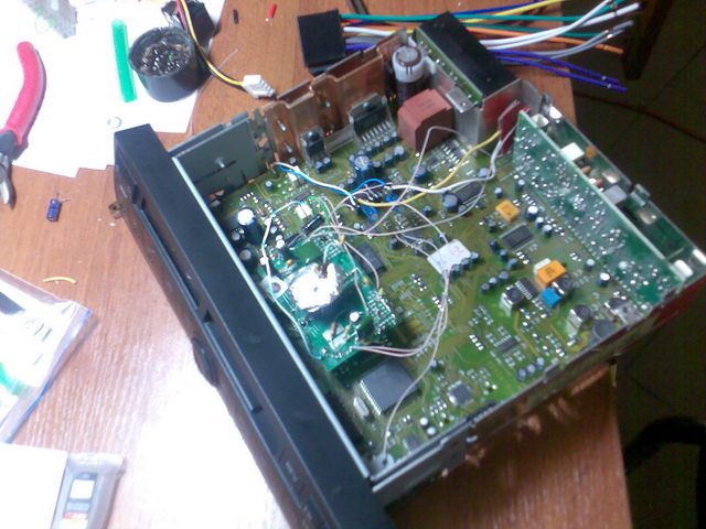 Таким образом достигается подача звука с компа при работы навигации и прослушивания р/станций на магнитоле. В магнитоле изменен угол крепления передней панели, так как она переехала из штатного места в нештатное. ![]()