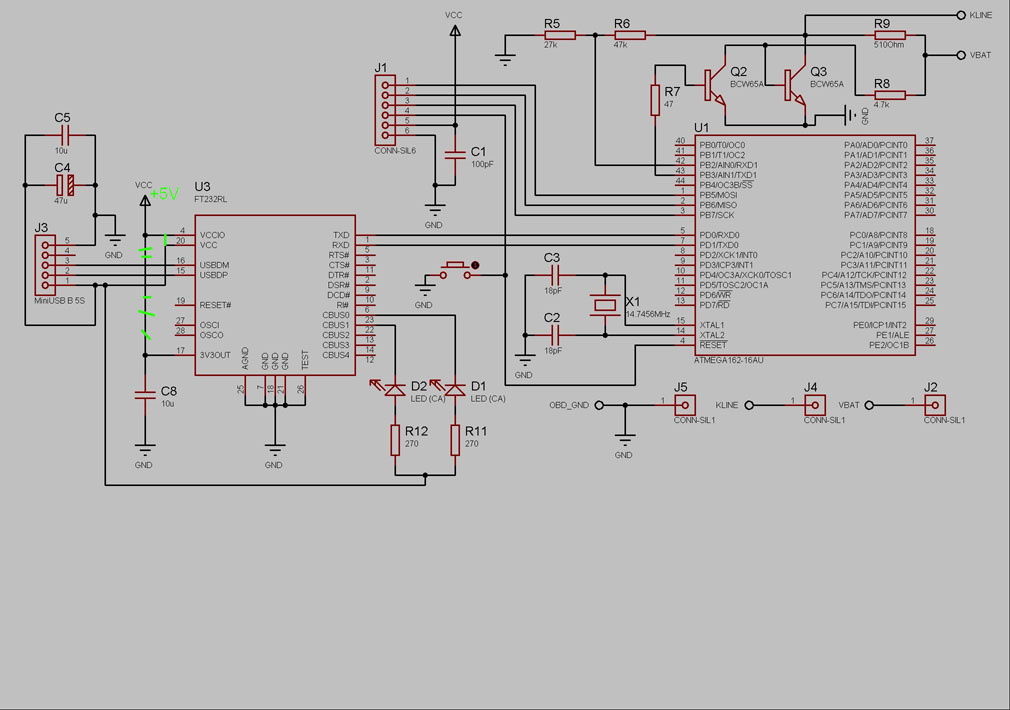 Насчет 3,3V питания и рабочей частоте не выше 8М, тут vadiks прав, спасибо. Конечно, можно прогу перекомпилить и на более низкую частоту кварца, но нужно ли это? Предлагаю такой вариант: контроллер питаем от 5В, получаемого прямо с USB, оттуда же питаем и VCCIO FT232, а 3V3OUT оставляем в покое. |