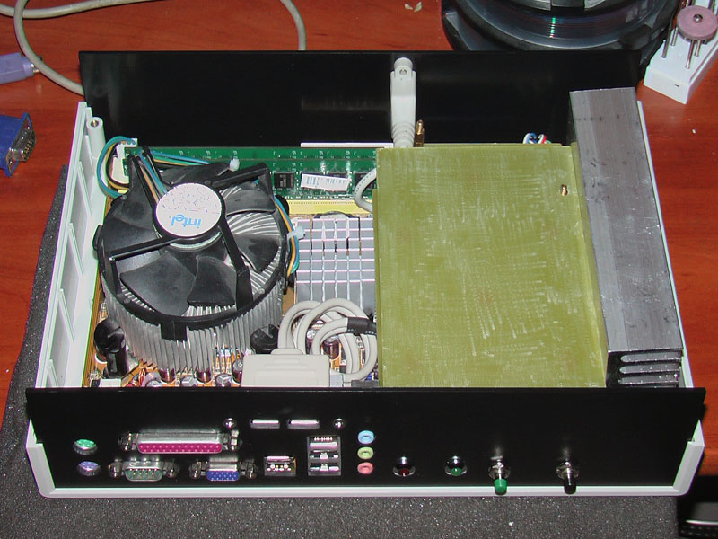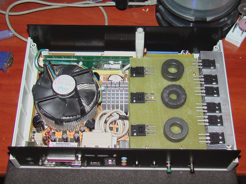 Знаний и умений хоть отбавляй, элементарная база есть, руки из нужного места растут, думал я и малость робел. Ведь на первый взгляд что проще собрал компьютер, воткнул монитор в машину и поставил софт. Но на самом деле я понимал что только этим все не окончится. И так начнем потихоньку. К процессу решил подойти по серьезному. Долго проект кочевал из одного уголка мозга в другой. И в один из дней все компоненты слились во едино. Решено сделать следующее: 1.Компьютер должен быть в корпусе и занимать как можно меньше места. Объясню почему. В моем бобре хоть и много места но оно всегда занято или охотничьими или рыболовными принадлежностями. Зачастую под самую крышу. 2.Проблема с установкой монитора не решена. Очень не хочется отказываться от хорошей головы Alpine. 3.Обязательный видео регистратор. 4.Обязательно чувствительный GPS приемник, и самое главное герметичный и морозоустойчивый. 5.DVD привод в подлокотнике. 6.Продумать систему ввода-вывода (клава, мышь) 7.На LPT завести несколько нужных контролируемых сигналов. За платформу была взята материнская плата ASUS P5S-MX-SE 1200 рублей. Процессор Core Duo E2200 2500 рублей. 2 Гигабайта оперативной памяти PC2-5300 1000 за обе планки. Жесткий диск 40 Гигабайт IDE 2.5'' взят со старого бука. В чипе был куплен корпус G756V 300х200х75мм. 900 рублей. Размеры сразу были просчитаны и основной расчет был на выступающий куллер процессора. Отверстие в корпусе и лопасти куллера находятся в одной плоскости, что позволяет добиться максимального использования приточной вентиляции. Пришлось изрядно потрудится над вырезанием отверстий под коннекторы (металлическую планку поставить не получилось бы и этот вариант не рассматривался). Внутренняя компоновка получилась такая. Над слотами PCI на латунных стойках был закреплен вырезанный кусок гетинакса без фольги. На нем расположился HDD. Для подключения жесткого диска был выбран IDE разъем по причине меньшего потребления питания дисков этого интерфейса. Для того чтоб все стало красиво ))) был перенесен разъем IDE материнской платы. Теперь он смотрит вверх. Над жестким диском планируется разместить самодельный блок питания собранный с применением SMD компонентов, по трех трансформаторной схеме. Между стенкой корпуса я разместил радиатор, на котором будут закреплены транзисторы и диодная сборка. Контроллеры ШИМ будут собраны на отдельной плате. Это позволит экономично использовать оставшееся пространство. С торцов радиатора будут расположены два вентилятора. 40Х40 на вдув с одного конца радиатора для создания направленного движения воздуха вдоль радиатора. И EC5010L12S 12В, 50х50х10мм работающий на 6000 об./мин на выдув. На днях займусь вытравкой платы. До скорых встреч ![]() Последний раз редактировалось mefisto; 10.01.2010 в 00:41. |