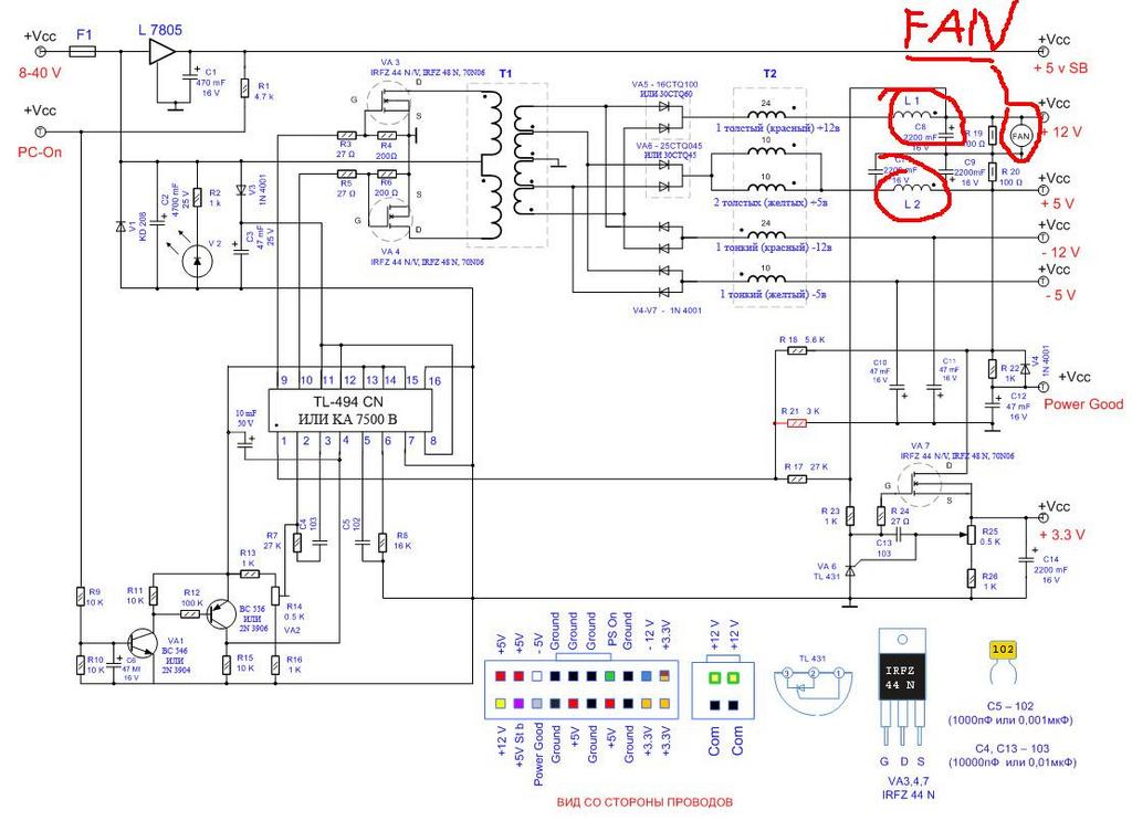 что это за FAN и можно поставить перемычки в место катушек L1 и L2 и потянет ли этот блок обычный стационарный пк: мат плата Foxckon (точно не помню какая), винт 3,5 120 гигов , проц селерон 2,8, видюха Radeon 9600 siries. |