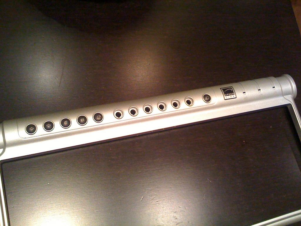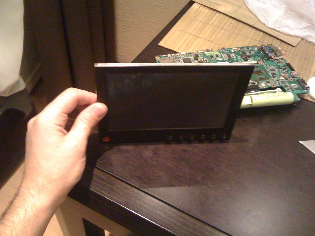 Я так понял, ты хочешь моник закрепить где то стационарно, а нижний блок с клавиатурой и тачем сделать подвижным? Или нет? Если нет, то зачем отверстия под светодиоды? Отдельно их выводить? У меня была мысль удлинить шлейф клавы, ибо она компактная, удобная..