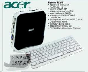 Есть модели на чипсете sis и ION, процессор во всех моделях Atom 230. 3Q Qoo NetTop ION-BL1GBP (ION/Atom 230/LAN/6xUSB/DVI/1GB+1xSODIMM/1x2.5 SATA) p/n:112272 - можно найти в интернете за 205$ без жесткого диска. Чипсет: nVidia ION Размер: 172 x 154 x 20 мм (спокойно поместится в отсеке автомагнитолы) Цвет: черный В комплекте VESA-крепление и подставка для верт. расположения 1GB+1x SODIMM DDR2, 1x 2.5" HDD SATA Характеристики 3Q Qoo NetTop ION-BL1GBP (ION/Atom 230/LAN/6xUSB/DVI/1GB+1xSODIMM/1x2.5 SATA) p/n:112272 Описание Охлаждение: бловер; Для сборки неттопа на базе ION + Atom 230; Внешний адаптер 19В, 40Вт максимум; Процессор / чипсет: Intel Atom 230 1.6Ghz / nVidia ION; Память: интегрировано 1GB DDR2 + 1xSODIMM DDR2 до 2GB (3GB в сумме); Сетевой адаптер: 10/100/1000 LAN; Жесткий диск: 2.5" SATA до 500GB (рекомендуется 5400 об/мин); Звук: стерео + микрофон; Порты вывода: 6 х USB, 2+1 audio, DVI-I, LAN; Миниатюрный размер: 172 x 154 x 20 мм (габариты без опоры/крепления); В комплекте VESA-крепление; и опора для вертикального расположения компьютера. Операционная система Процессор Intel Atom N230 Чипсет nVidia ION Оперативная память 1GB + SODIMM DDR2 Жесткий диск 2.5" SATA Порты ввода вывода 6 х USB, audio, DVI-I, LAN Габариты 20 x 154 x 172