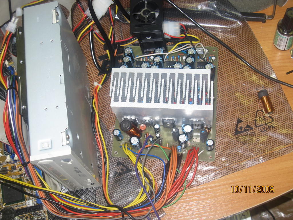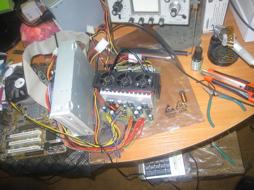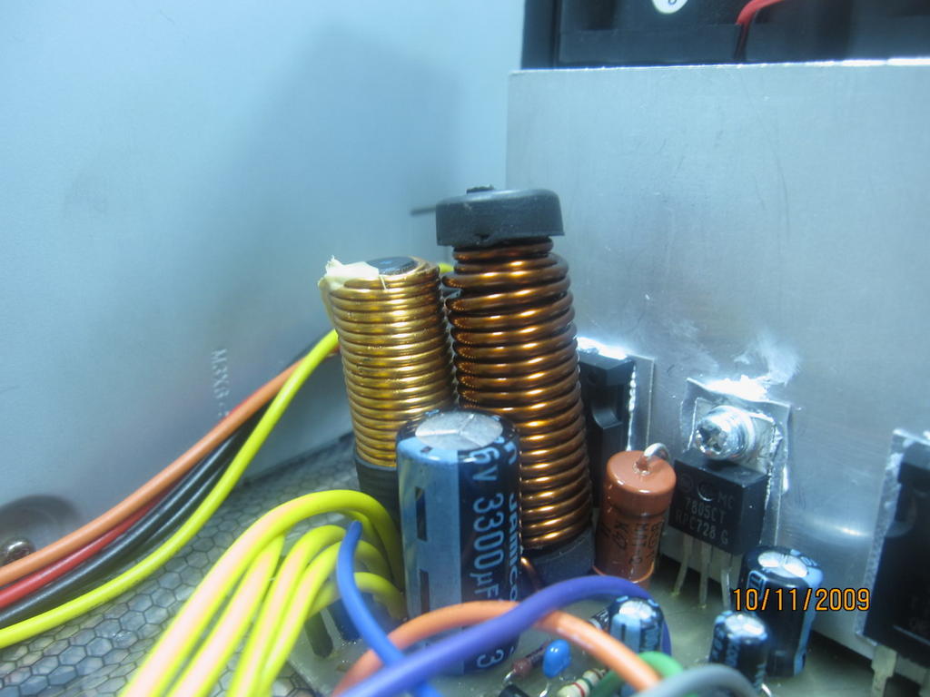 Сейчас даже не нужен куллер на радиатор, да и сам дроссель не сильно греется, можно его держать рукой.P.S. На фото дроссель светлый поменьше был изъят из какого-то дохлого БП. Тот что побольше я намотал сам. В принципе с маленьким тоже работает, но греется сильнее чем с самодельным. |