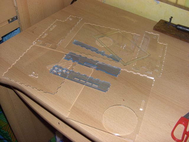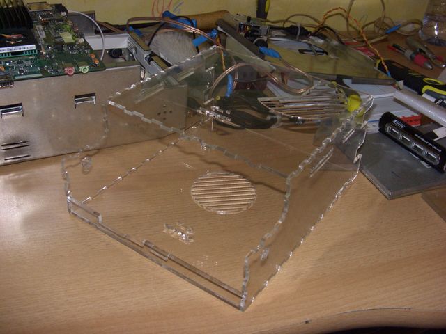 ==================================== На протяжении всего проекта было закуплено или планируется: Наверное немного о комплектующих: Было куплено(без учета потерь.): -eeepc на одноименном форуме за 4000 р. с XP и гарантией 6 мес. -Матрица тачевая. -USB хаб 4 порта 300 р. -GPS если надо - вспомню где. -Универсальный блок питания гдето тут он уже упоминался. рублей в 300-400 обошелся. как называется не помню, и на сайте у них снаскоку не нашел. товарный вид оно потеряло сразу после покупки (снят корпус и выкинут на..рен), поэтому от фото толку не будет. Отличительные черты: на входе 12+- вольт авто, на выходе помоему переключатель 6 10 и 12 вольт. думаю в микронике посоветуют. -Bluetooth не покупал, просто валялся какойто но помню, что 2.0 это точно .-)) по купленому железу пока все. после того, как закончится свистопляска с установкой буду докупаться: ПЛАНИРУЕТСЯ: -Usb ODBII Can -TV-Радио (не знаю пока какое, главное чтобы под Centrafuse пахало) если у кого есть наводка .-) ,готов ее принять с благодарностью. ==================================== Сперва собрал корпус из картона - попробовать, вродибы все сраслоь. затем по размерам соорудил корпус из фанеры. все прекрасно вписалось, но чувство прекрасного просило больше .-)) далее начал гнуть корпус из толстой лужоноц жести тут процесс затянулся .-) затем вырезание отверстий под всякие выходы гравером, запоротые отрезные круги, буры, бесконечные примерки и подгонки и т.д. вообщем не понравилось мне работать с жестью! Да, на этом этапе проект подорожал на 3200, потому как иззабесконечных примерок у матрицы оторвался шлейф(новая 2000 р) .-( и от огорчения я сел на тачевую матрицу (1200 р). Кстати, в железном корпусе не было вентилятора, по первости, щелей хватало, радиаторы большие, я думал, что все будет ок. но Епц мал, да удал .-) за 15 мин нагревал все пространство вокруг себя, а так как воздух не циркулирует, температура проца доходила до 83-86 градусов (летом). в итоге зафигачил туда кулер, самый дешовый чота около 150 р. и все, телемаркет проц, даже в самую жару выше 45 не нагревается, при этом охлаждается и блок питания, который стоит в том же корпусе. Вообщем эта же схема, с небольшими доработками, перекочевала на след. этап. ... затем было затишье и вынашивание мыслей. вообщем волевым усилием решил кроить корпус по пацански, из оргстекла. Собсна чертеж был сделан за неделю, раскрой стоил 1200 р. с учетом материала и день времени. Раскроили прямо скажем дерьмово. Все как стир доска, местами даже срезано косо! Короче пришлось еще обрабатывать кромку часа 2-3 но всего, все равно не исправил. Естественно обнаружились косяки в проектировании, обидные косяки, но гравер и напильник решает все вопросы .-)))) все - вводная закончена. продолжаю трудиться. из проблем: -не могу найти разъем, для подключения к штатному разъему авто (звук, питание, состояние габаритов...) изза этого пока некрасивая борода проводов. -отсутствие времени, ну это ,думаю, как у всех. -избыток денег .-( просто не знаю куда их девать .-))))))))))))) страааашная проблема .-)))) шутка. Инсталяция еще в процессе... следите за новостями .-) заранее спасибо за критику и предложения. ========================== По многочисленным просьбам выкладываю чертеж для раскроя корпуса. версия первая. 3мм оргстекло (честно говоря маловато, но не критично, если клеить вдумчиво дихлорэтаном) Раскрой.zip PS внимательно посмотрите на заднюю стенку, где выводы под разъемы - там ошибка. лучше перерисоват
