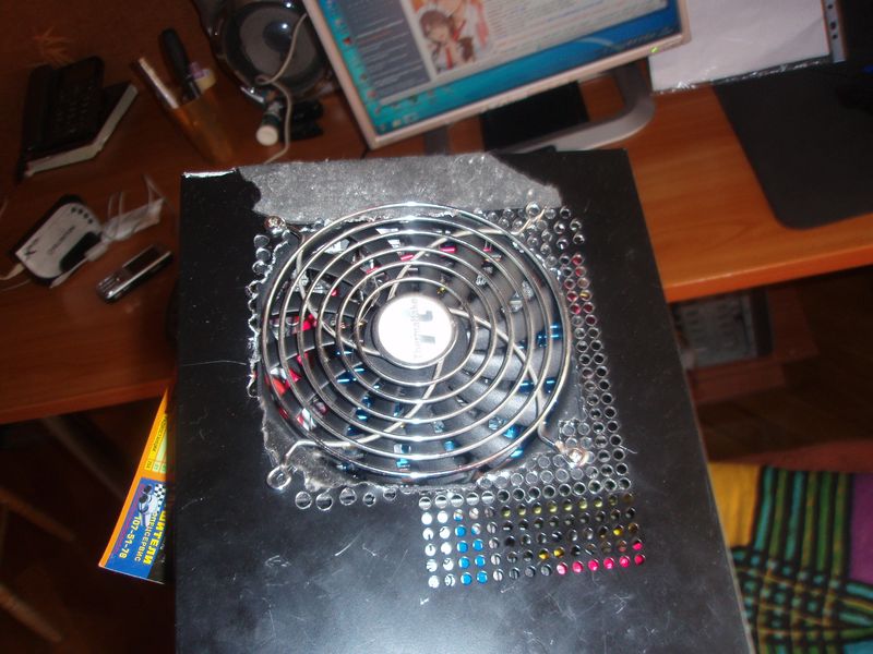 Комп начал жутко греться, а еще не лето... Прикупил тонкий вентилятор 120х120х12 мм, 2000 оборотов -дует очень хорошо... Сначало просто дырок насверлил сверху, прислонил вентилятор к ним - поток в 2 раза ослаб, да еще и свист появился... Пришлось просто вырвать квадратный кусок сверху и заделать его решоткой... Сегодня прокатился, пока не перегревается, дует винт очень хорошо - с боковых отверстий даже рукой чуствуется как воддух выходит... Получилось не очень красиво , НО эффективно ![]() ![]() |