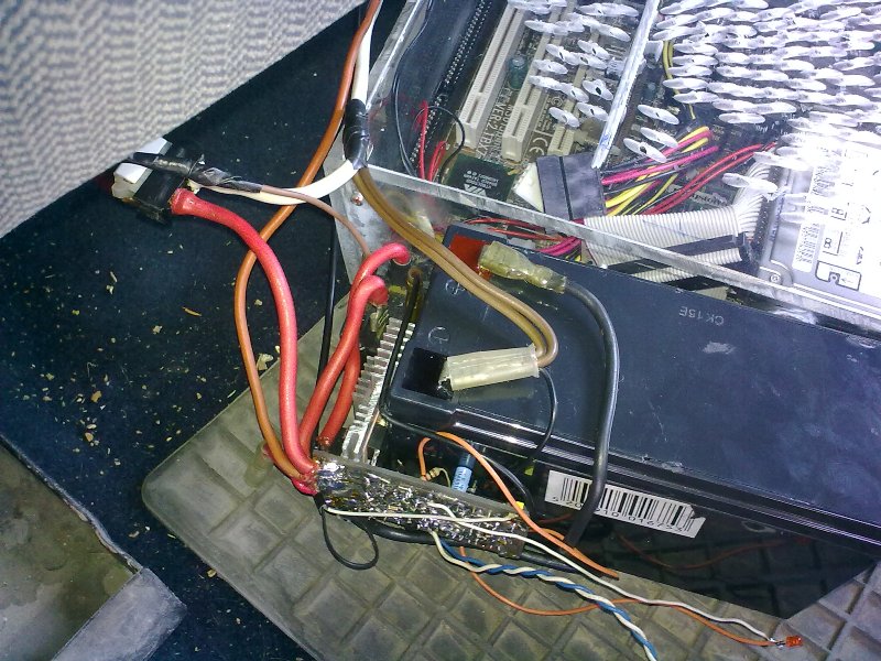 Может проще всего купить обычный автомобильный аккумулятор, поставить его в багажник, и подключить его как на схеме, тоесть пока зажигание не включено реле не замкнуто, питание на комп идет только от резервного, зажигание включаем, реле замыкается, заводим, но нагрузка от стартера идет только на основной, (ибо диод..) а когда завелась машина зарядка идет на оба аккумулятора...