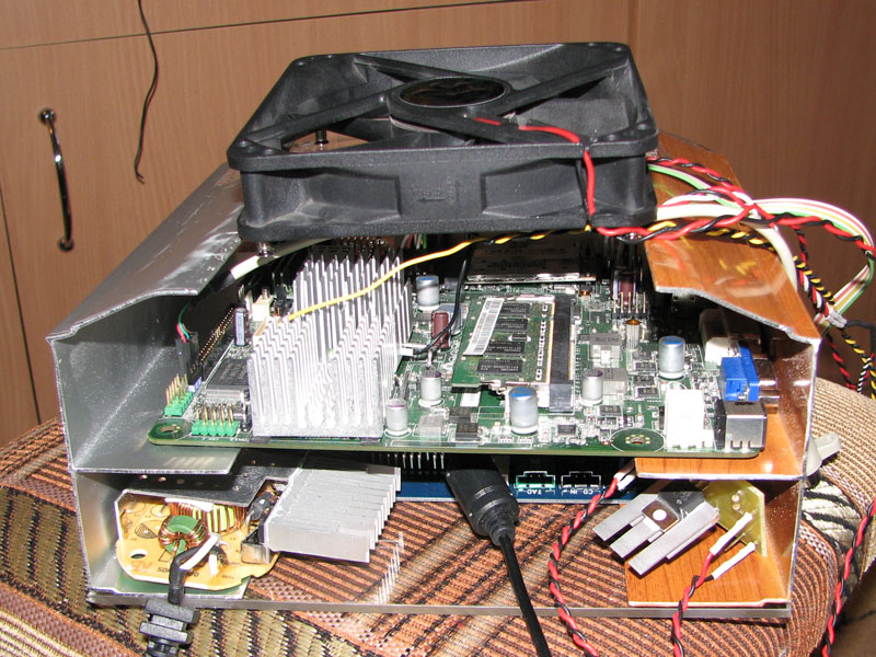 Наконец-то собрал комп. Там, где штатно стоит прикуриватель планировался майфун, панельку которого я своими кривыми руками благополучно убил при монтаже — шлейф вырвал с дорожками печатной платы.
