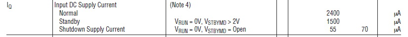 Standby = 1500uA - потребление, когда работает линейный регулятор;