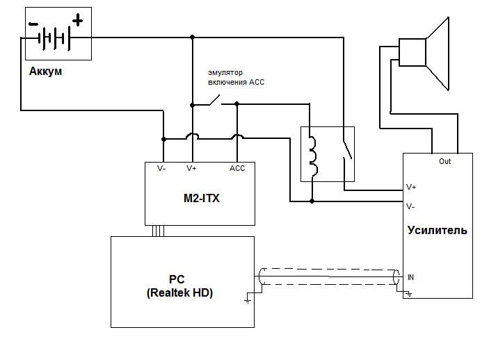 Очень нужен совет бывалых электронщиков... Но по порядку. Карпутер собираю в самодельный корпус, который будет ставиться в 2-дин отсек в торпеде. Корпус состоит из двух частей: нижняя - мать с процом, верхняя - сидюк, винт, БП, усилитель и все остальные компоненты. Усилитель хотел использовать внутренний, т.к. большой мощи не требуется, и места лишнего нет. Планировал спаять сам по схеме от какой-нибудь магнитолы, ватт на 40 на канал - за глаза. Для проверки были куплены вот такие наборы: http://www.masterkit.ru/main/set.php?code_id=38533 2 штуки. Схема вот такая: ![]() Подключал вчера к автомобильному аккумулятору дома. Схема подключения в первом вложении. Усилитель включается вместе с АСС (через реле), а выход remote от БП должен был в будущем управлять глушением усилка (режим mute, которого на приобретенном образце нет). Так вот, все замечательно разаботало, но... Идут помехи, причем очень заметные. Когда меняется картинка на мониторе, когда мышкой шевелишь, когда диск читается... Все это слышно в колонках независимо от уровня громкости. Уровень громкости, кстати, я собирался регулировать программно в компе, соответственно нужен максимально "чистый" выход. Читал, что экран провода должен быть припаян только с одной стороны (обычно у источника). Отпаял экран - помехи от компа не изменились, а шума заметно добавилось. Отпаял с обеих сторон - ничего не изменилось. Меньше всего помех и наводок получалось, когда экран припаян с обеих сторон. Стал ломать голову, откуда эта хрень лезет. Думал, может наводки на выходы звучки (она у меня галимая, встроенная). Я уже стал задумываться над тем, чтобы искать/спаять регулятор громкости для системы 5.1, чтобы звук от компа всегда шел на максимальном уровне, чтобы его помехи меньше губили, а через регулятор заходил в усилок. Потом подключил к карпутеру домашний центр, включенный в розетку - помех нет (хотя сигнальный кабель гораздо большей длины и такого же качества). Есть шумы небольшие, но как сидюк диски читает - почти не слышно (громкость на центре делалась на максимум, а уровень регулировался программно в карпутере). Стал экспериментировать со своим усилком: отключал массу на сигнальном проводе с одной, другой стороны, пробовал поворачивать его в разных плоскостях - толку ноль. Пока вертел, усилок задымился. Отрубил. Оказалось выгорел резистор R6 Отложил этот усилок, стал экспериментировать с другим. Вытащил джек из звучки (помехи пропали!!!), приложил его массой к корпусу карпутера - пошли помехи (от сидюка). Пока думал, второй усилок задымил. Та же фигня - выгорел резистор R6!Дальше экспериментировать с такими последствиями не хочется... Итог такой. Были обнаружены 2 вида помех (или наводок - не знаю точно): шум (гасился экраном на сигнальном проводе) и звук "байтовых потоков" от сидюка, винта, мышки. Если сигнальный провод не подключать к усилку - помех не слышно (значит это не по питанию??). Подключаем сигнальный провод без земли вообще - слышны помехи (будем говорить только о помехах от байтов). Подключаю землю - разницы особой нет. Оставляю только землю - помехи остаются. Подключаю карпутер к центру - помех нет. Объясните пожалуйста, куда копать, что делать? Всю голову сломал... |