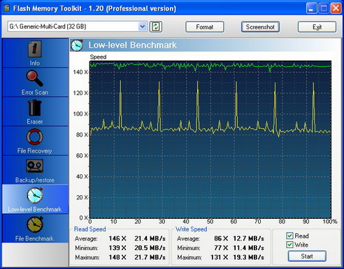 Озадачившись артефактами на записи, решил я докопаться до причины. Нарыл в сети Flash Memory Toolkit, и стал им мучать свою карту памяти. Ибо дефекты записи сильно напоминали битые (недокачанные) джепеги, подозрение в первую очередь пало на карту.
