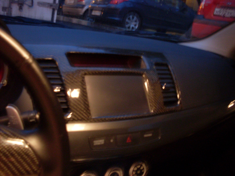 Из железяк: неттоп 3Q + питание 12В, монитор - prology pcm700, нет - Yota, внизу патифон Мистери (временно, нужно было под 2 дин кожух сделать, хочу туда поставить пионер 72-й), хирургия коснулась рамки, кожуха климата, накладки на КПП, подстаканников - вобщем то распилил к черту весь салон . Но оно того стоило!!! Да, кстати это не пленка под карбон - это карбон и есть. Со вспышкой получилось как-то по-металлический , на самом деле цвет как на размытых фотках