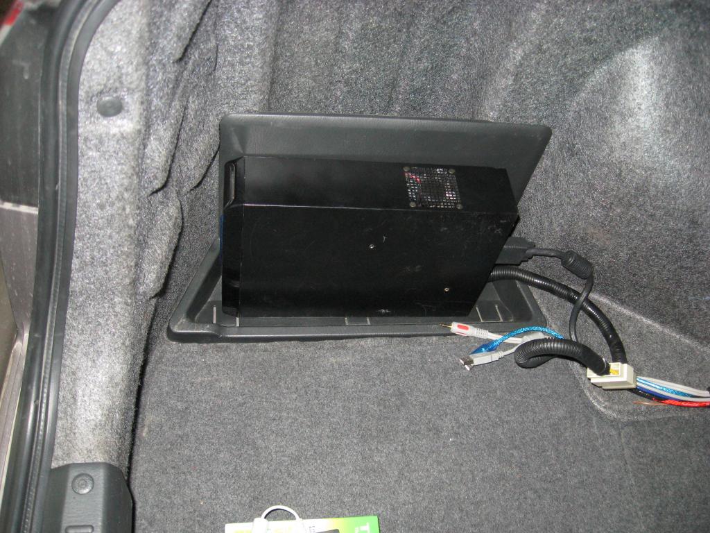 Сам системный блок было решено разместить в багажнике, с левой стороны. Там и вентиляция лучше и в случае чего легко можно получить доступ к системнику.