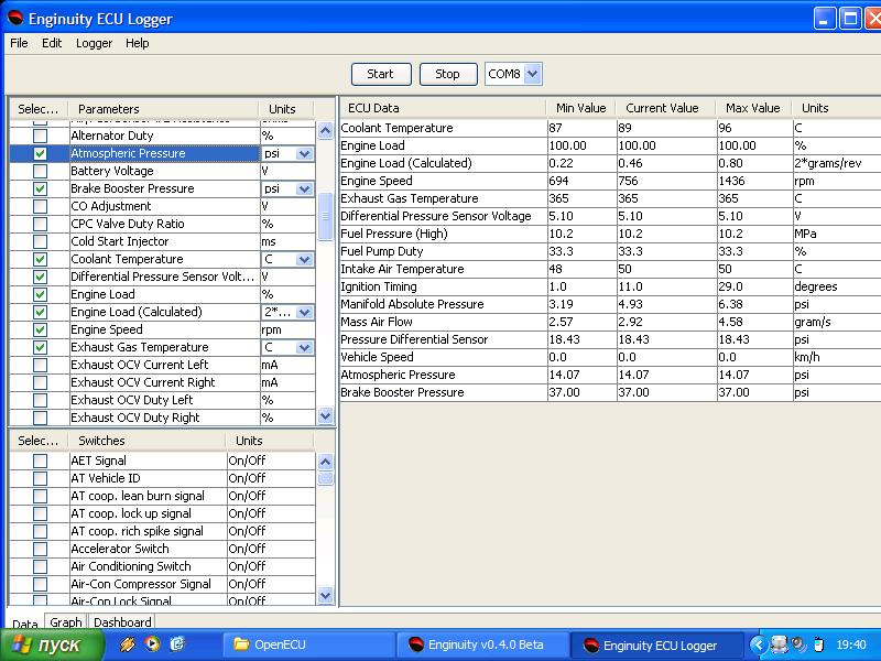 а тут - все в одном месте, да и если кому нужен оригинал, пожалуйста...перепрошивки, тюнинхи-шмунинхи... ну тут что могу сказать, действительно, если человек хочет быть 100% уверен в работоспособности и долговечности своего пепелаца... НЕ НАДО ТУДА ЛЕЗТЬ ВООБЩЕ! заводская программа в 99% случаев является оптимальным вариантом для расчетных условий эксплуатации авто (в 1% я закладываю случаи аналогичные ситуации с фордом фокусом, вот начали его производить у нас в России, а через некоторое время пришлось менять прошивку ECU для обеспечения стабильности запуска двигателя в холодное время года). Те же, кто хочет вносить изменения, должны подходить к этому вопросу лишь максимально возможно владея информацией, но и при этом надо осознавать, что даже при производстве есть такая вещь как заводской брак, а при "домашних" условиях и подавно присутствует определенный процент риска Немного отклонясь от темы скажу что я слышал истории о том, как мужики свой половой орган повреждали во время секса, ну так что же? не заниматься этим?! Не знаю что в мозги заливал твой знакомый, 2-3 лошади это действительно полная фиговина, к тому же такое значение укладывается в погрешность измерений... с другой же стороны прибавка мощности могла быть не столь значительной из-за направленности прошивки в сторону повышения эластичности движка - увеличения крутящего момента? "Чип-тюнинг" это вообще-то самый простой способ повысить отдачу двигателя, поскольку заводская программа изначально его душит в угоду экологическим требованиям. И более всего это заметно в переходных периодах работы как то старты и ускорения... ************************************************** ******* Последовательность установки программ/драйверов (перевод с адаптацией под первоначальную утановку контроллера): - отсоединить кабель контроллера от компьютера (если вы его туда успели воткнуть ) - проинсталлировать самую новую версию ecuflash которая так же содержит все необходимые драйверы для работы контроллера - воткнуть кабель контроллера в компьютер. Компьютер опознает кабель как "1.3 Subaru". Однако это не значит, что девайс готов к работе - на сообщение компьютера "Найдено новое оборудование" (или же "New Hardware Found" в случае с английской версией Windows) нужно выбрать пункт "Не в этот раз" ("Not at this time") и щелкнуть на "Далее" ("Next") - выбрать вариант для самостоятельного указания пути нахождения драйвера и используя функцию "Browse" (или как там в русской винде обзывается, "Обзор" чтоли - не помню) указать путь к нужным нам файлам: "C:\Program Files\OpenECU\EcuFlash\drivers" (может отличаться если вы меняли путь для установки или буква жесткого диска не "С") - жмем "Далее" ("Next") - тут windows обнаружит еще одно устройство, соответственно проходим заново три вышеописанных пункта - втыкаем контроллер в диагностический разъем автомобиля (ВНИМАНИЕ! МАШИНА ДОЛЖНА БЫТЬ ЗАГЛУШЕНА И ЗАЖИГАНИЕ ВЫКЛЮЧЕНО!) и включаем зажигание (но не запускаем двигатель). Загружаем ecuflash. Иконка "Read from ECU" должна быть синей, указывая на то, что драйверы работают и соединение установлено - закрываем ecuflash и инсталлируем ecuExplorer. После запуска и инсталляции нужно указать порт общения (будет называться в списке как OpenPort 1.3 Subaru, у меня это оказался com8. Активируется щелчком на нем правой кнопкой мыши и указанием "SSM Diagnostic". Для проверки работы запустить Realtime Date Viewer и проверить что это работает (там отмечаем чекбоксы сп