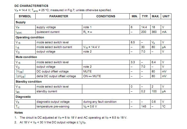 По даташиту напряжение на 15-й ноге: 0-2v > standbay 3.3-6.4v > mute 8.5v > рабочий режим |