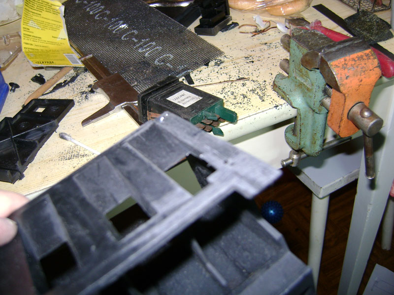Теперь мне надо соединить блок переключателей печки с блоком кнопок. У блока кнопок есть технические полости, из-за которых не приклеить блок печки. Эти полости я заделал, и теперь появилась площадка для приклеивания блока переключателей печки.